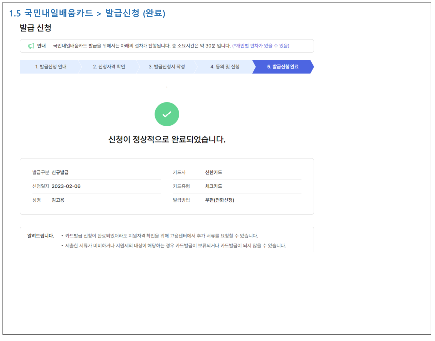 - 심사 후 카드 수령 (통상 7~14일 소요)