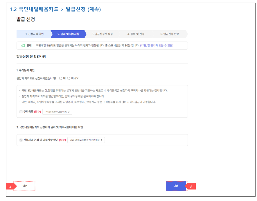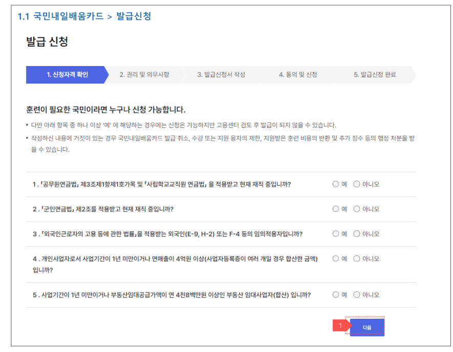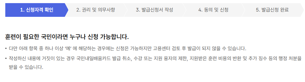 - 국민내일배움카드 신청 (온라인 또는 고용센터 방문)