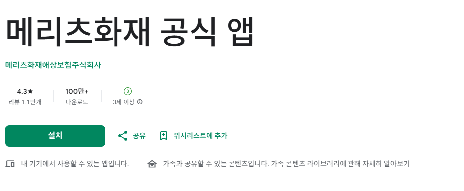1. 구글 플레이에서 '메리츠화재 공식 앱' 설치