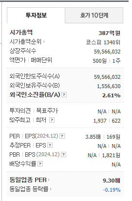 - PER: 4.91배 (업종 평균: 33.57배)