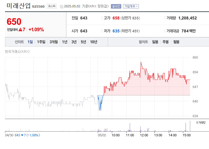 - 주가 현황: 2025년 5월 기준 650원대