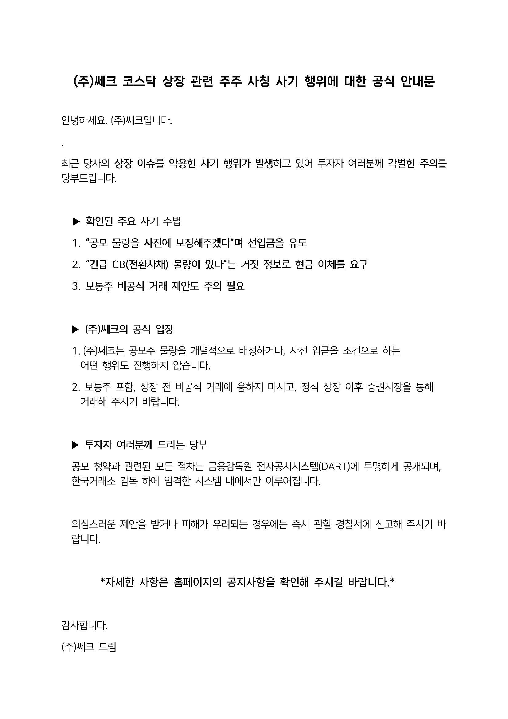 *주주 사칭 사기 행위를 조심하시기 바랍니다.