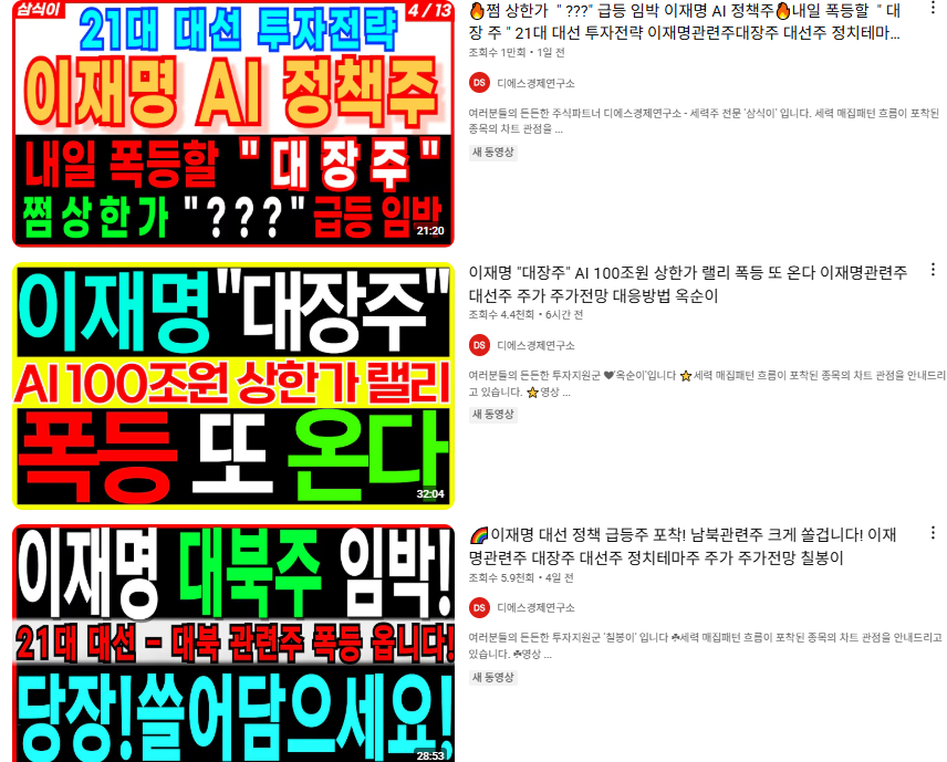 이와 같은 대선 이슈는 단순한 뉴스가 아닌 주식 시장에서 강력한 모멘텀으로 작용합니다. 특히 DSC인베스트먼트, TS인베스트먼트, 포바이포, 이스트소프트 등 주요 종목들이 이재명 정책 테마주로서 강력한 상승 흐름을 보이고 있습니다.