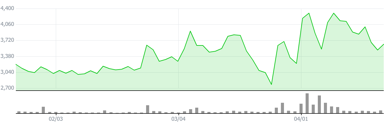 4월 11일에는 변동 폭이 53%에 달하며 강한 세력의 개입을 보여주기도 했습니다. 단기적으로는 조정이 있을 수 있으나, 기술적으로는 추세선 돌파 시도가 계속되고 있는 우상향 흐름입니다.