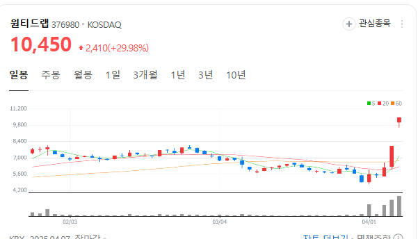 에르코스, 꿈비, 아가방컴퍼니는 물론이고, 원티드랩 같은 일자리 플랫폼 기업도 상한가를 기록했어요.
