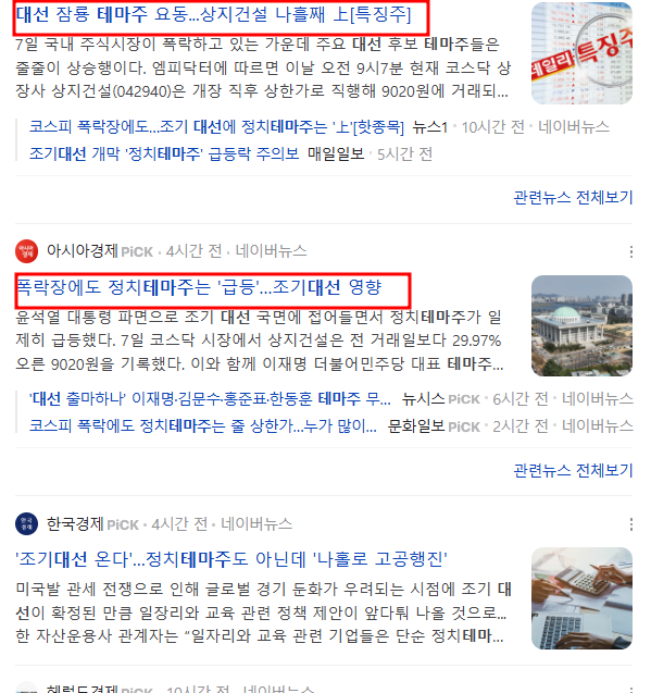 특히나 대선이 갑자기 닥친 상황에선 유권자들의 관심이 뜨거운 정치인들의 이름이 기업과 엮이기만 해도 주가는 꿈틀대요.