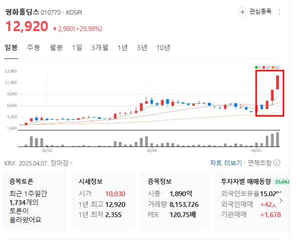 | [평화홀딩스 주가 전망] 김문수 테마주 급등 이유와 대응 전략은? (1) | 2025.04.07 |