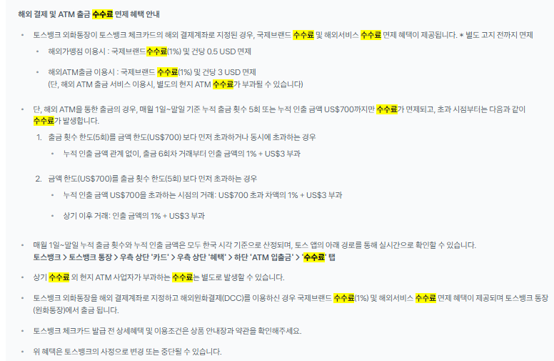 토스뱅크 외화통장 보유 고객은 해외 ATM 출금 시 조건부 무료 혜택을 받습니다.