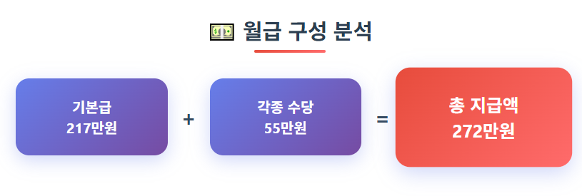 기본급 + 일반 수당으로 구성되며, 표준적인 7급 공무원 급여 수준을 보입니다.