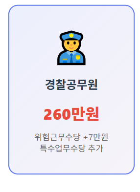 위험근무수당, 특수업무수당 등이 추가로 지급되어 일반행정직보다 월 10-30만원 정도 높은 실수령액을 받습니다.