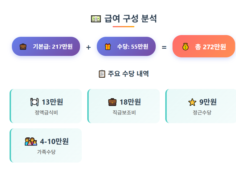 솔직히 말씀드리면, 기본급만 봤을 때는 '생각보다 적네?'라는 생각이 들 수 있어요. 하지만 여기에 다양한 수당이 추가되면 실제 수령액은 훨씬 늘어난답니다.