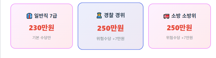 같은 7급이라도 일반행정직과 경찰·소방공무원은 급여 체계가 다릅니다. 업무의 특수성과 위험성을 고려해서 추가 수당이 지급되거든요.