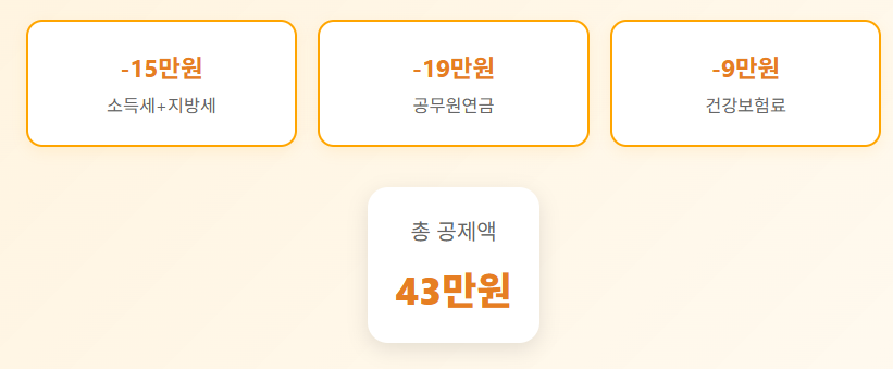 기본급과 수당을 모두 합쳤다고 해서 그 금액을 다 받는 건 아니죠. 각종 세금과 보험료, 연금 등이 공제되니까 실제로는 얼마나 받을 수 있는지 계산해보겠습니다.