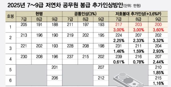 | 호봉 | 기본급 | 전년대비 인상액 |