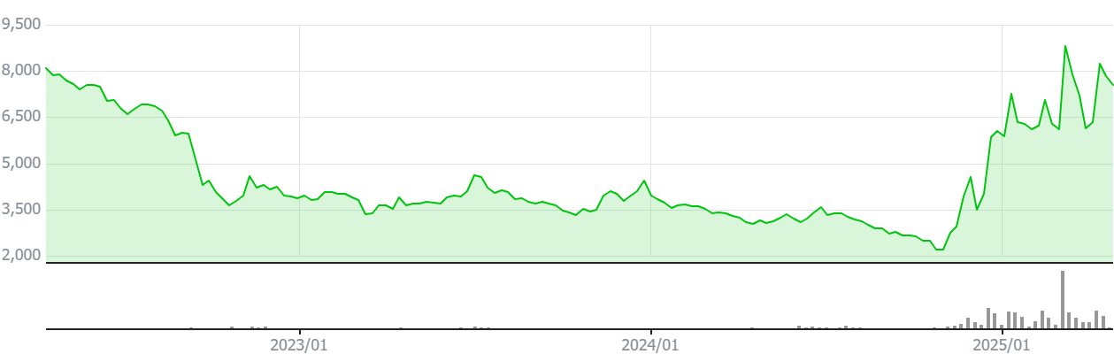 2025년 4월 21일 기준, HJ중공업의 주가는 7,560원으로 전일 대비 270원 하락하였습니다. 52주 최고가는 9,900원, 최저가는 2,180원으로, 1년간 160% 이상의 상승률을 기록하였습니다.