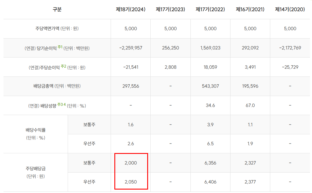 - 2024~2025년: 주당 최소 2,000원 배당 보장