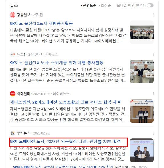 2025년 임금협상에서 SK이노베이션 노사는 전년도 소비자물가지수(2.3%)에 연동한 임금 인상에 합의했습니다.